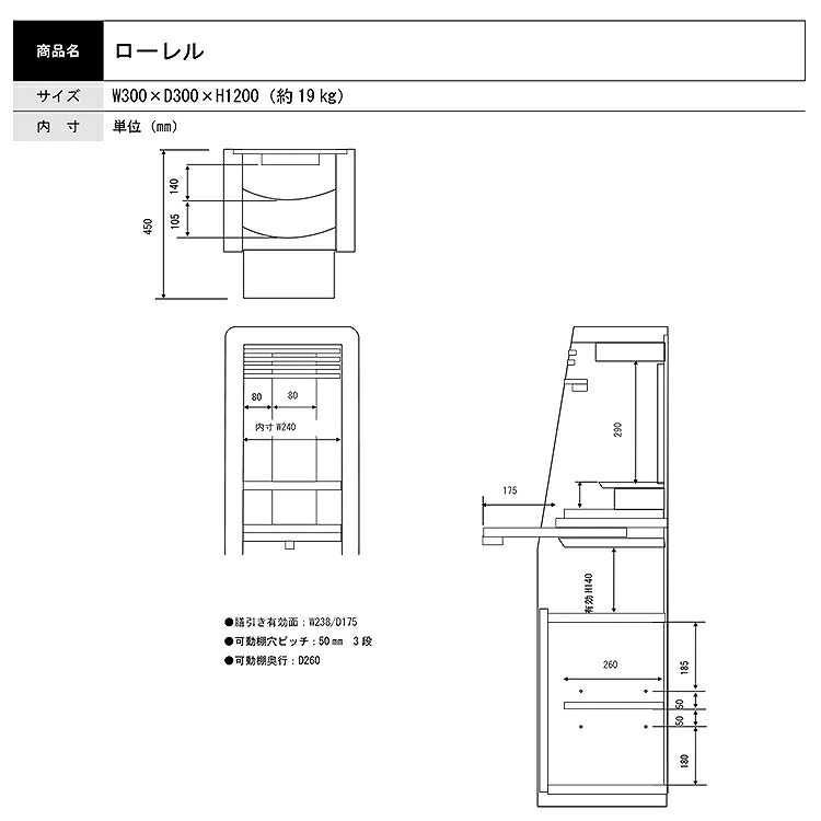 W300×D300×H1200(約19㎏)