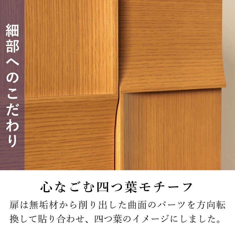 四つ葉のように貼り合わせた扉を開くと、開放的な広がりを感じます。