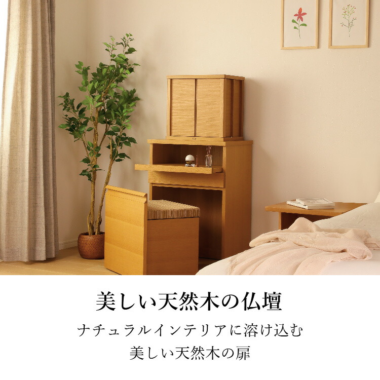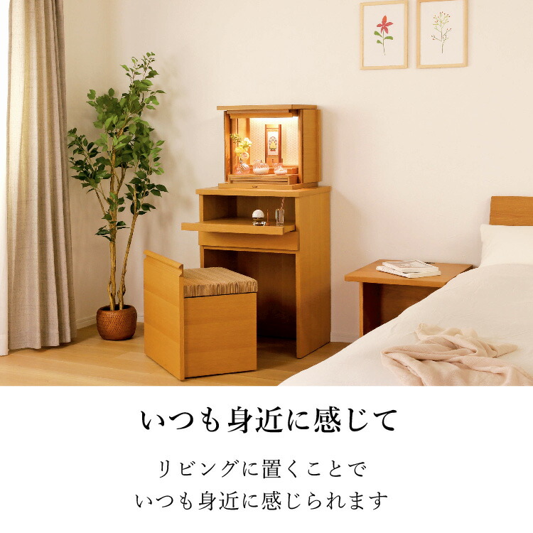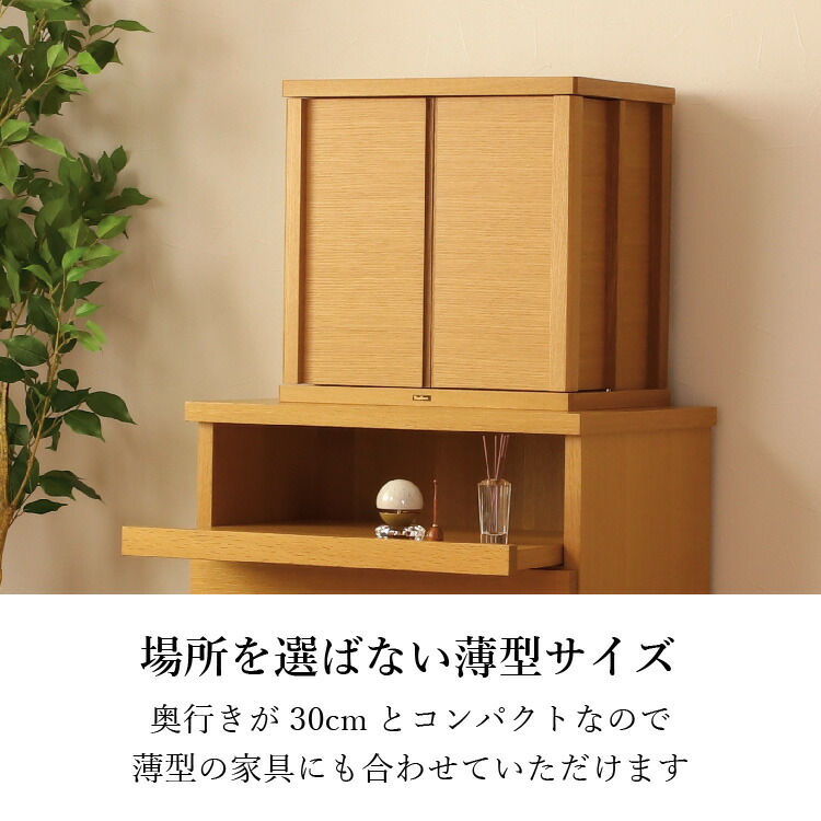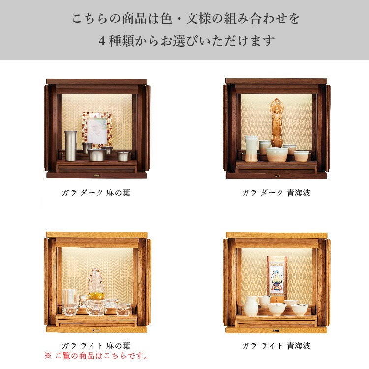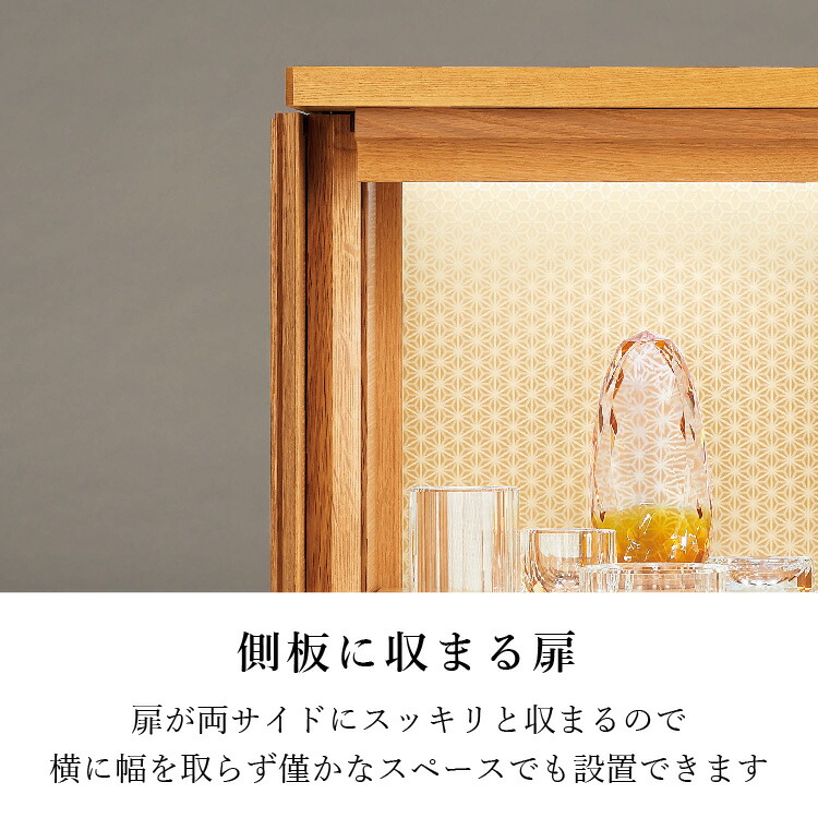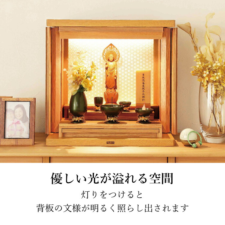 日本の伝統的な組子の柄が明るく照らし出され、祀る空間を優しく演出します。