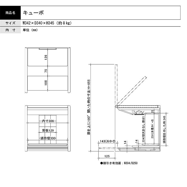 市松模様の地ビラは跳ね上げ式で、横幅をとらないコンパクトデザイン。