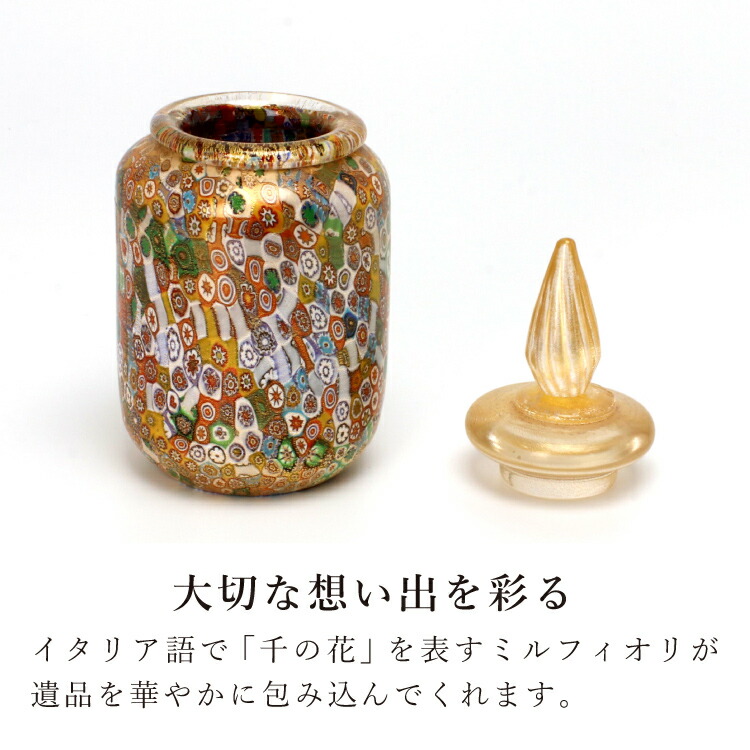 キュートな宝石箱のようなヴェネツィアンガラスの骨壺です。