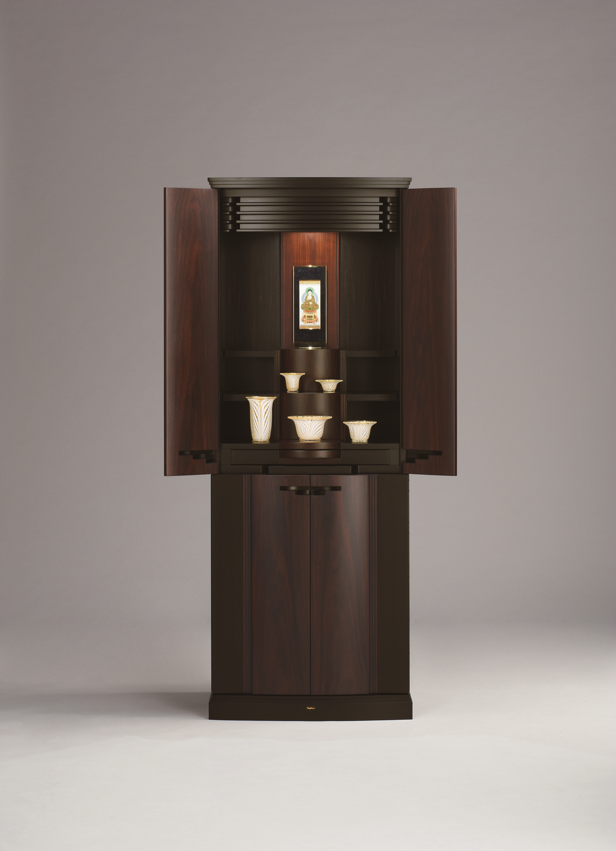 古くから銘木として代表的な黒檀と本紫檀を用いて、モダンでありながら懐かしさも感じられる仏壇にしました。
