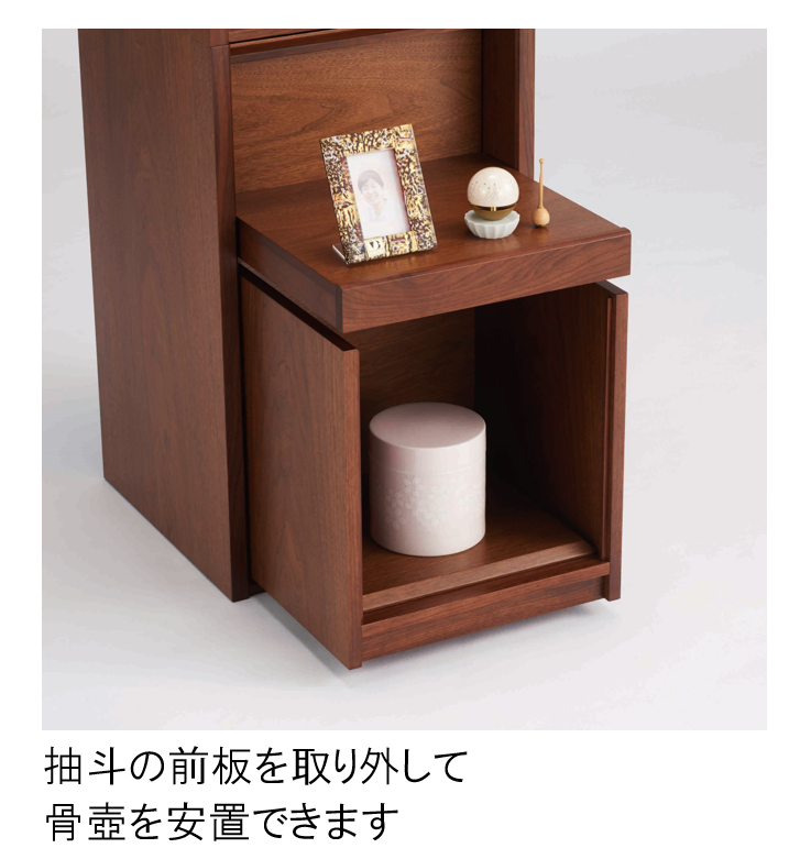 骨壺と写真を安置して故人を偲び、手を合わせることができます。
